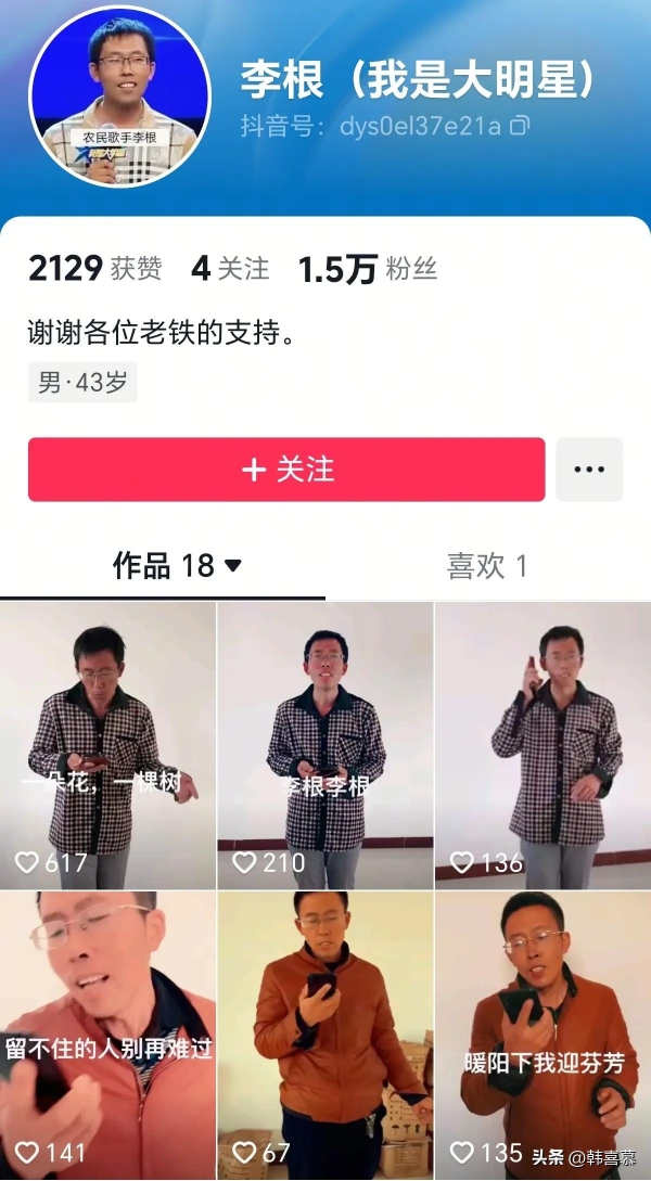 李根也早已经开通了个人账号,之前也坚持分享自己唱歌的视频。