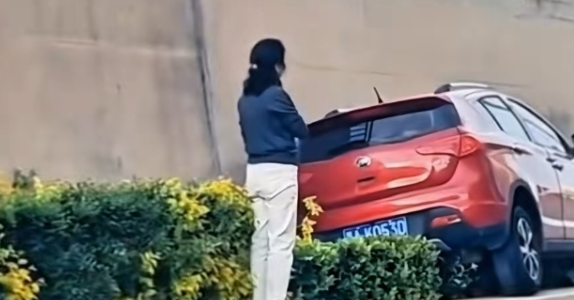 有人赞叹车主车技太过霸道,别人停车靠车位,她停车靠轻功;