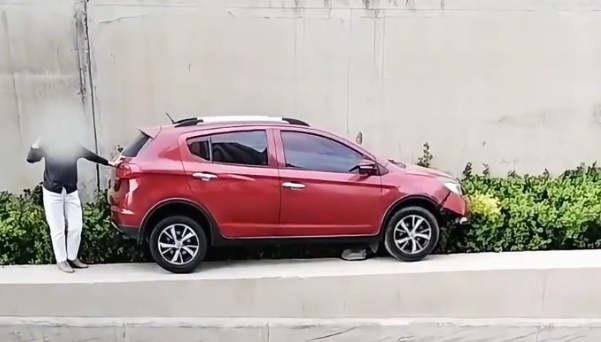 离谱名场面又来了!好好的马路不开,汽车直接登顶高处花坛,围观群众全员满脸问号。