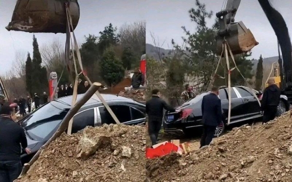 记者采访了解到,清明节期间,当事人梦见已故父亲要求迁坟并要钱、要车,于是在4月9日上午,不经申报,擅自将父亲、爷爷、奶奶的骨灰,从别处迁至自己承包的山上重新下葬,并在坟墓旁填埋了一辆2013年购置的奔驰轿车,挖坑占地约20平方米。