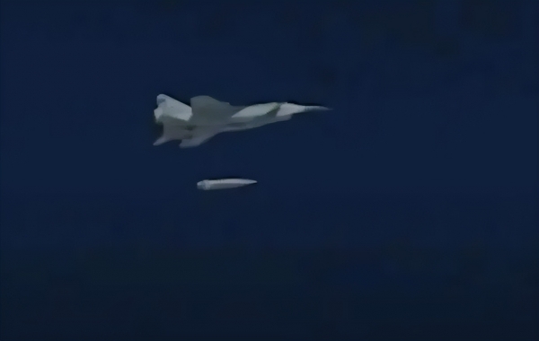 俄空军米格-31战斗机在一次演习中发射"匕首"导弹画面。