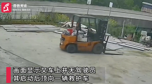 无人叉车突然启动撞向救护车 涉事公司:可能是线路短路 2026-04-17 15:31 百姓关注 4月15日,四川南充一处监控拍下离奇一幕:一辆无人驾驶的叉车突然自行启动,径直撞向一辆崭新的救护车。 事发后,叉车所属公司员工回应称,事故疑似因线路老化短路导致叉车自动启动。所幸被撞救护车尚未上牌,公司表示将自行维修解决。