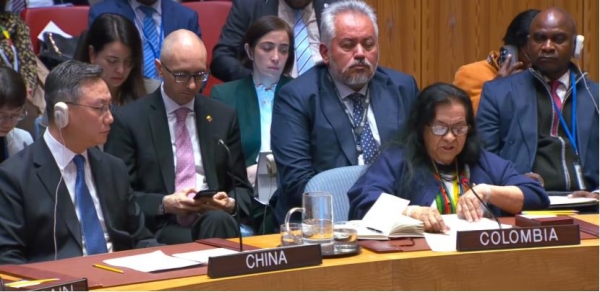 哥伦比亚常驻联合国代表扎拉巴塔在会议上也是第一个发言,她先是感谢了中俄的支持,随后情绪激动地痛斥美国对委内瑞拉的军事行动,是为了掠夺其自然资源和战略资源,并强调"强权法则不能凌驾于多边主义之上,民主绝不能通过暴力或胁迫来推动"。