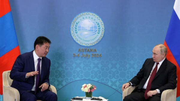 据俄罗斯卫星通讯社报道,2月9日至11日,蒙古国代表团访问了莫斯科,蒙古国国家大呼拉尔主席乌其尔勒率团与俄联邦安全会议副主席梅德韦杰夫等人展开会晤。梅德韦杰夫与乌其尔勒见面,气氛相当轻松。