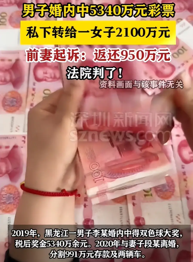 一查,知道前夫中过5340万大奖,而且在中奖之后第三天就把2100万转给了另一个女人。