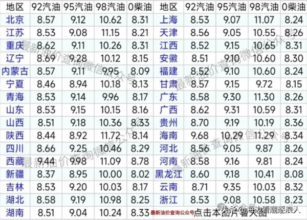 现在距离油价调整还有接近2周时间,小编提醒大家,多注意接下来油价的跌幅能否重新达到下调标准。今日油价(3月25日)92,95号汽油与0号柴油请看下方油价列表。