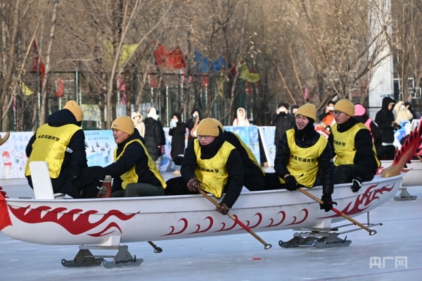 东北石油大学冰上龙舟赛(央广网发 东北石油大学供图)