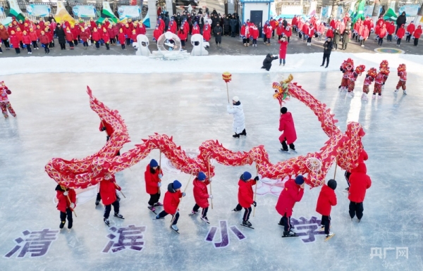 冰上舞龙表演(央广网发 哈尔滨市清滨小学供图)