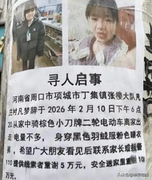 百万悬赏,对于普通家庭而言不仅是倾家荡产的决心,更是为人父母在绝望边缘发出的最后呐喊。河南项城15岁女孩凡梦辞,因一场琐碎的家庭口角负气出走,至今已失联整整15天。父亲凡先生将悬赏金额从10万元一路加码至100万元,这串数字背后,是一个家庭濒临崩溃的恐慌。原本只是姐妹间的日常摩擦,却演变成了一场生死未卜的漫长的等待,那只孤零零遗落在河堤边的拖鞋,成了目前最让人心惊肉跳的线索。
