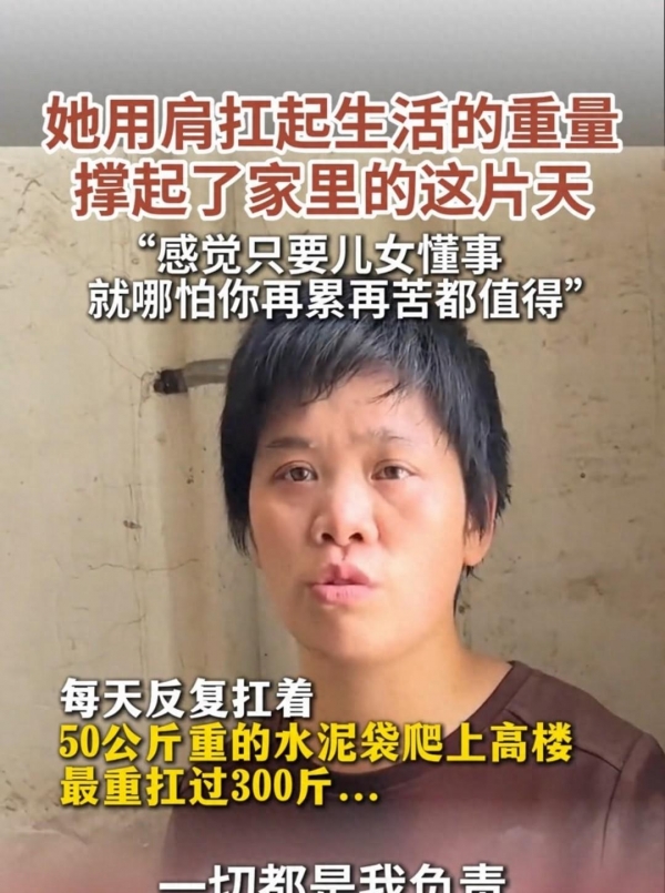 最重的一次,她扛过300斤的货。不止一次,肩膀被水泥袋砸出深印,手掌起茧,指节全是裂口。