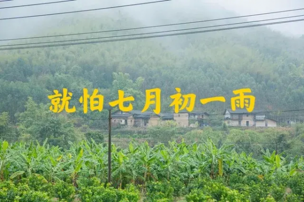 总之,如果农历七月初一这天有雨的话,则预示着后期阴雨天气多,对作物生长不利。因为,有了"就怕七月初一雨"的讲法。