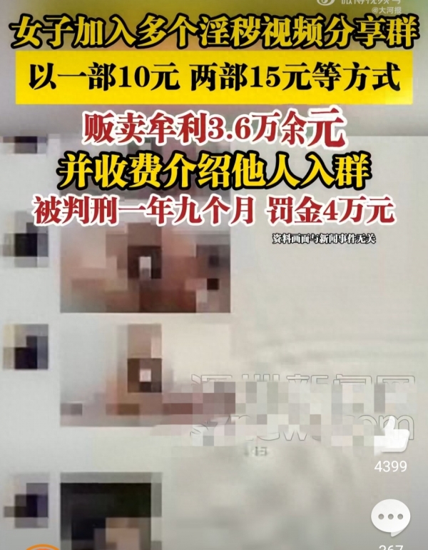 浙江浦江县有个"90后"女子龙某,靠在微信群里转手贩卖淫秽视频赚钱,前后折腾了五年多时间,最终因贩卖淫秽物品牟利罪被判了一年九个月缓刑两年,罚了四万块,期间非法赚来的三万六千多块钱也被尽数没收。