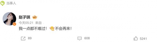 而赵子琪本人,也在凌晨5点,卡点发动态表示自己不难过。