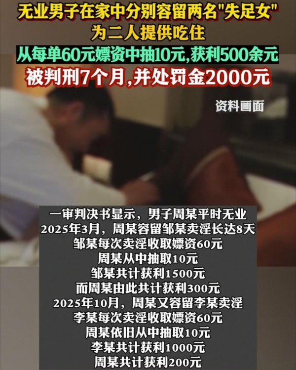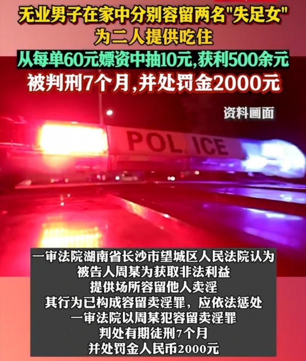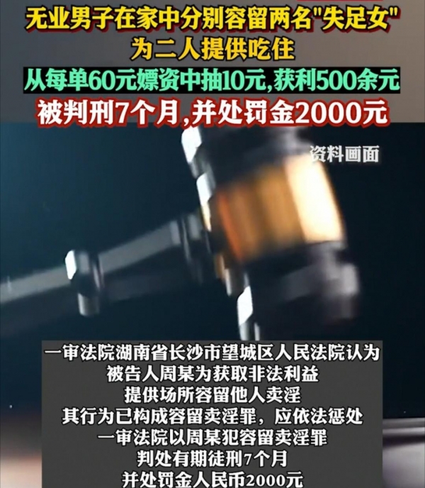 贪小利酿大祸!长沙一男子在家中提供"一站式服务"容留卖淫,仅赚500余元被判刑7个月