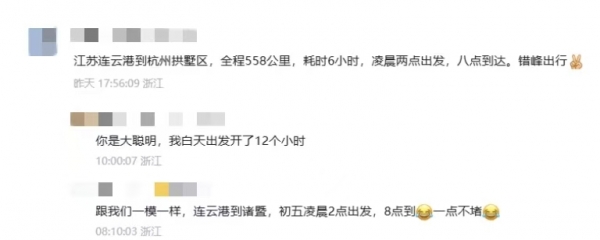 作为在返程大军中成功突围的"幸运儿",郑先生也大方分享了自己的避堵心得,"很多人觉得初六、初七返程人多,想提前走。但大家都这么想,'聪明人'都聚到一起了,反而成了新的高峰。我早上7点看导航才4个半小时,9点半出发就变了,所以能早尽量早。"郑先生说。