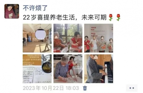 搬进养老院一个月,张瑾发了条朋友圈:22岁喜提养老生活,未来可期!
