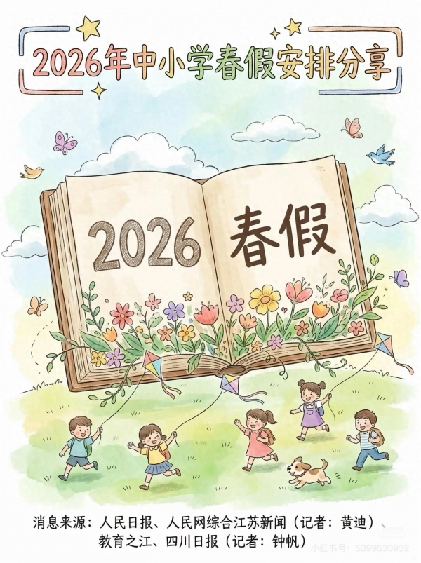 2026年政府工作报告首次明确提出"支持有条件的地方推广中小学春秋假",教育部等多部门鼓励各地结合实际,设置春假、秋假,每次3天左右,可与法定节假日衔接,调节学生学习节奏,促进研学实践。