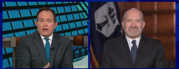 美国商务部长卢特尼克(右)接受CNBC采访。 视频截图