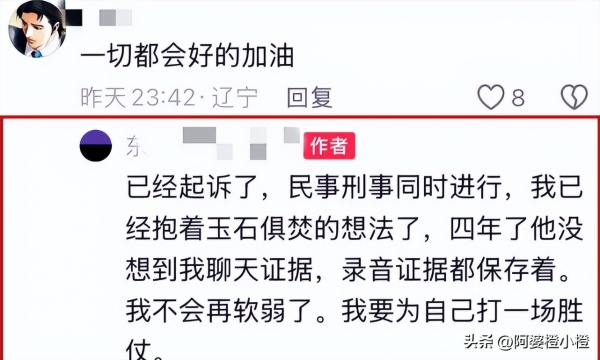 3月22日深夜的爆料中,程冷潇明确表示,她手中掌握着相关的聊天记录和录音证据,将同时提起民事和刑事的诉讼。