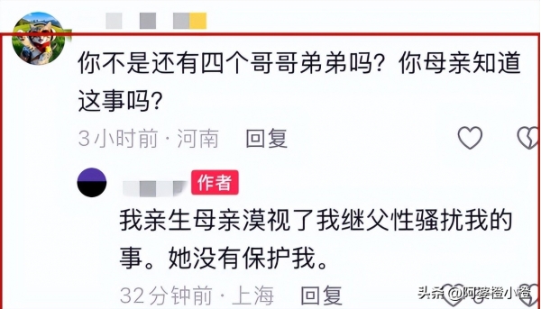 "我亲生母亲漠视了我继父骚扰我的事,她没有保护我。"这句话,像一把刀,直接插进了所有关注此事的人心里。