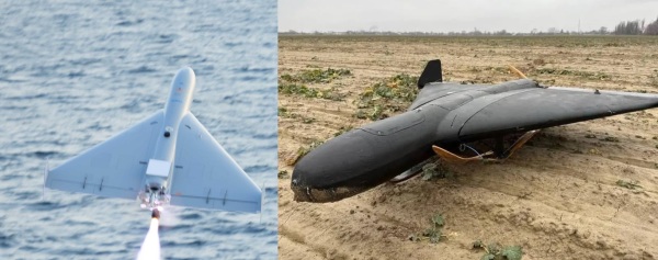 LUCAS(左)机背上后方的矩形卫星天线是目前俄罗斯"天竺葵"(右)以及原型"见证者"系列无人机尚未使用的