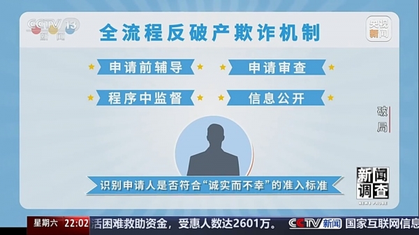 深圳破产法庭法官 黄新:我们做过一个统计,个体工商户或者企业主,或者一些创业者,这样的身份来申请的,占比差不多达到了七成,也就是说他们本身大部分的负债是因为生产经营,纯粹是因为生活消费的负债占比是很小的。