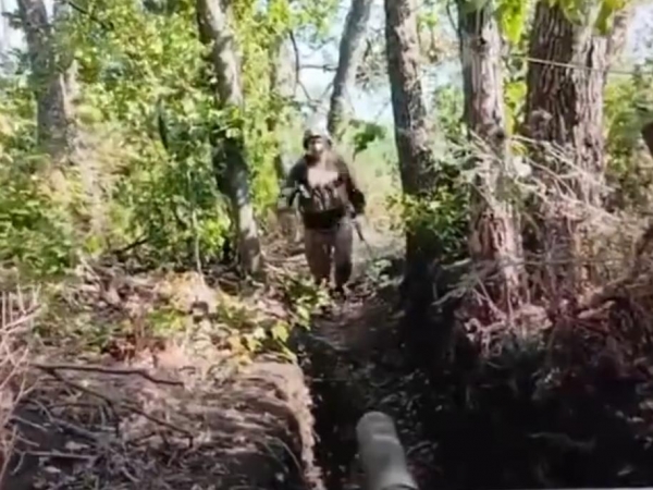 那名乌军士兵很可能也接到了要撤的命令,但因故晚了会儿,所以看其动作明显就不是战斗状态,而是听到这边有动静就赶紧跑过来归队,却撞上了摸上来的俄军来。
