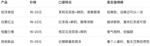 至于消费者最关心的价格和口味,这里做一个快速对比: