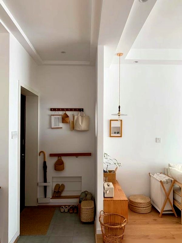 其实入户那堵墙只要留60公分,钉一排挂钩,再摆一盆小绿萝,钱包钥匙有落脚处,眼睛也能喘口气,成本不到一百块。