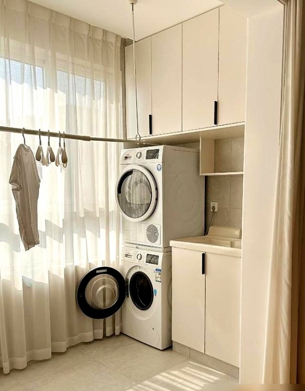 定制一排通顶柜,把杂物关进门板,中间留1米空档,放把折叠躺椅,太阳照进来时,你坐那刷手机,比囤十箱抽纸踏实。