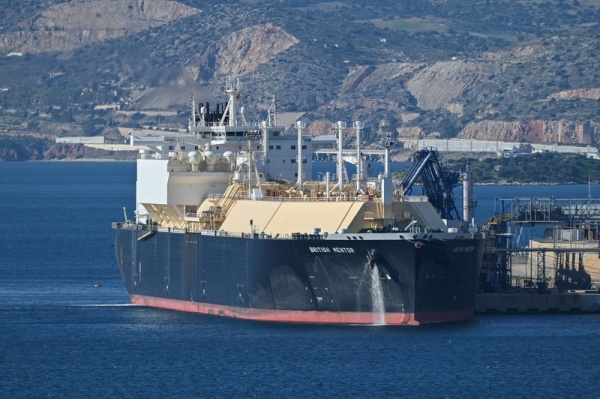 从美国萨宾帕斯出发的液化天然气运输船BRITISH MENTOR在雅典附近的雷维苏萨终端卸载美国液化天然气。