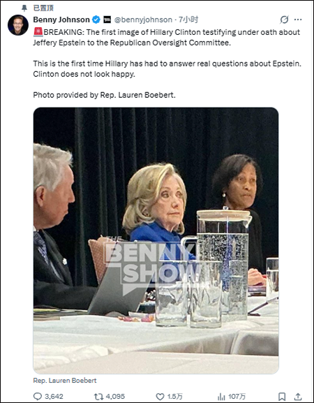 据了解,这起"泄密"风波由美国右翼政治评论员本尼·约翰逊一手挑起。他在"X"上发布了两张希拉里接受质询的现场照片,并直言不讳地透露,这两张照片是共和党众议员劳伦·博伯特的私下分享给他的。对于希拉里因照片流出一度停止作证,约翰逊辩解称,既然官方随后会发布完整版视频,那么提前公开一张质询开始前拍摄的照片,根本称不上违规。