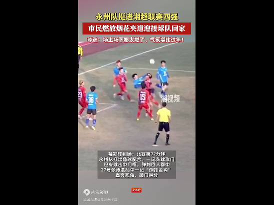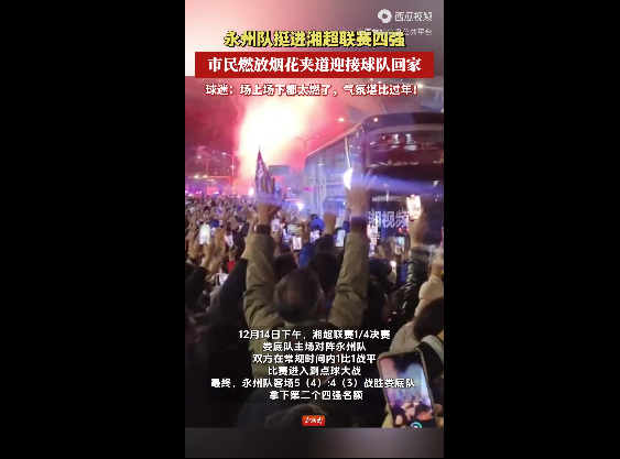 12月14日下午,湘超永州队客场对阵娄底队挺进四强。永州市民以最热烈的方式,迎接永州队载誉归来。