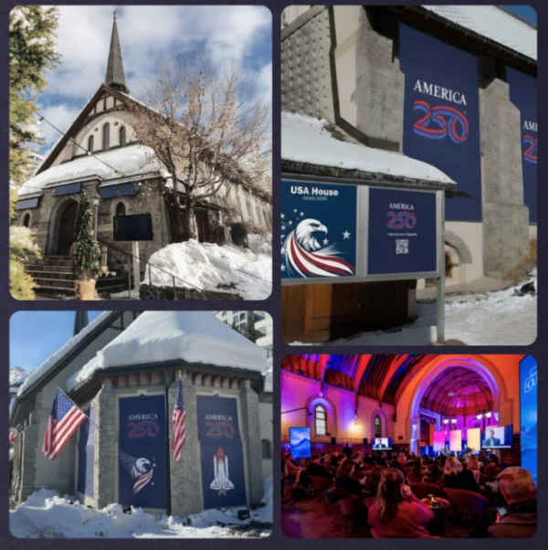 "美国之家"的活动将在达沃斯滑雪胜地一座19世纪80年代建成的小教堂内举行。教堂内将布置各类纪念展品,以纪念1776年《独立宣言》发表250周年。