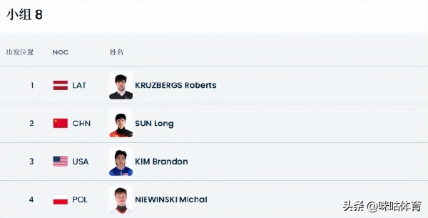 2000米混接1/4:中国队第三组,同组对手为加拿大、比利时、哈萨克斯坦
