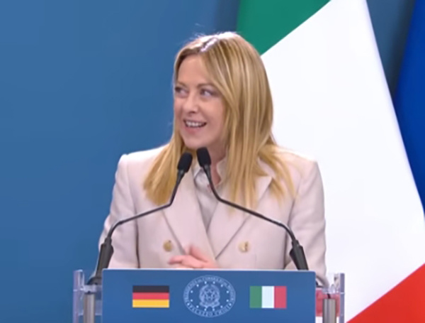 梅洛尼23日在会谈后的新闻发布会上说,"我们必须建设一个权威、有竞争力、拥有战略自主性的欧洲。在这一历史阶段,意大利和德国肩负着特殊责任:欧盟必须选择,是成为自身命运的主角,还是被动旁观"。