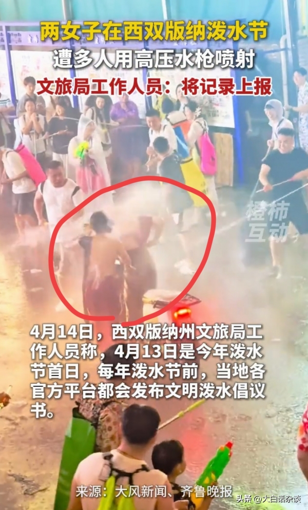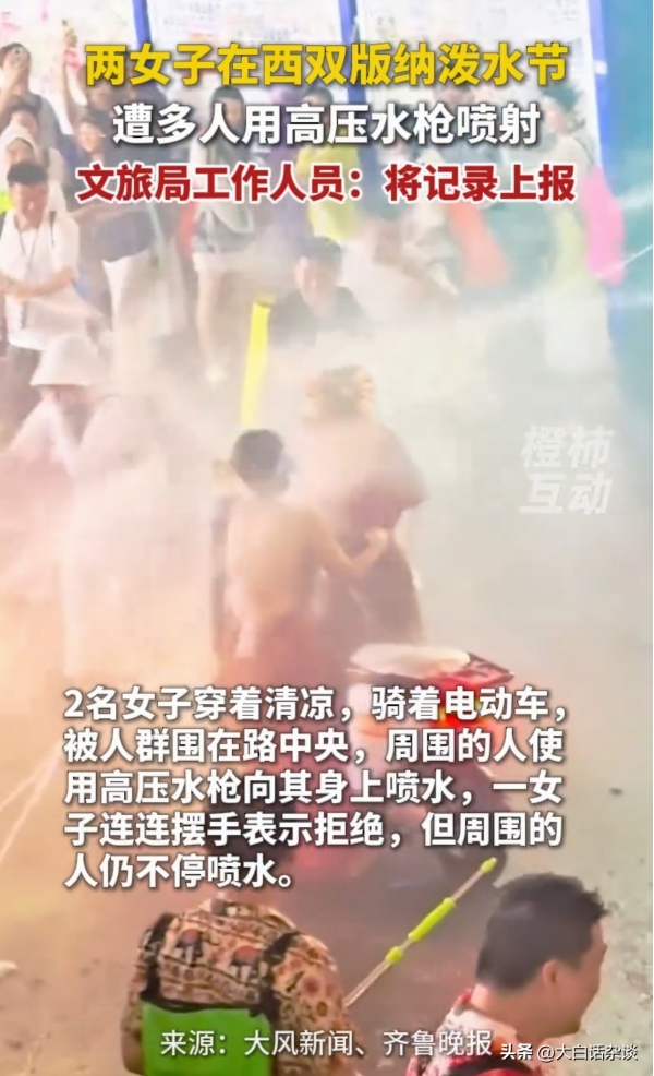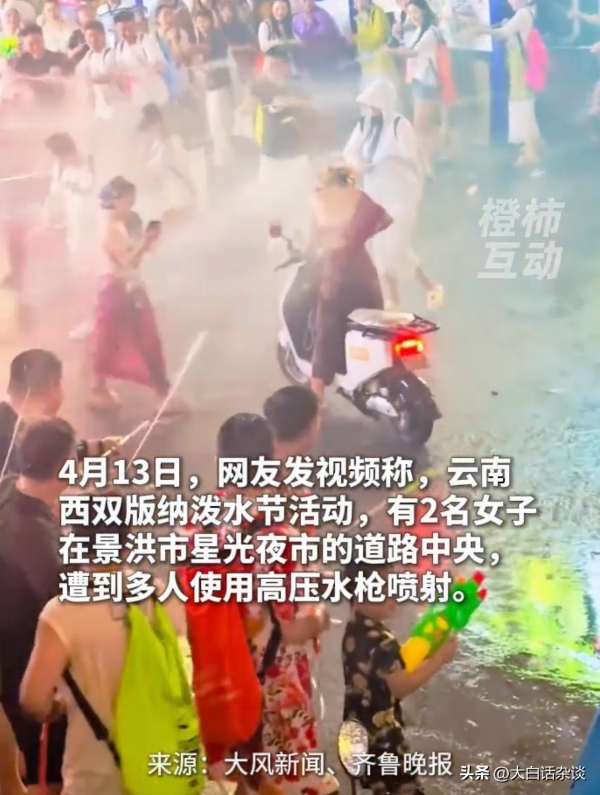 拍摄者称,泼水活动本来是自愿参加的,人家明确招手不愿意参与,还要强行喷射人家,这种行为极不文明,也违背了泼水节的寓意。