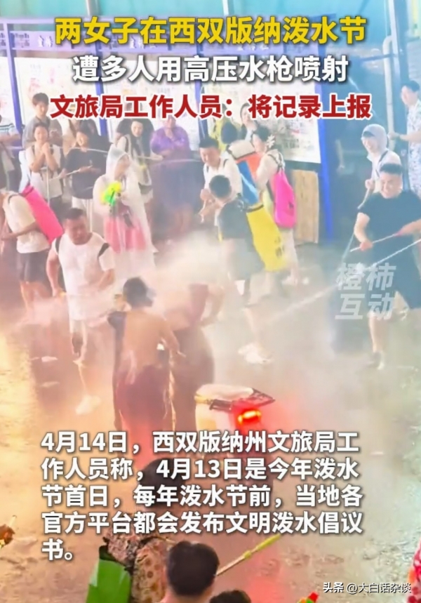 4月14日,西双版纳文局局就两名女子遭高压水枪强行喷射一事进行了回应,称当地文旅发布有文明泼水倡议书,上述反映情况将记录上报,后续将有专人答复。