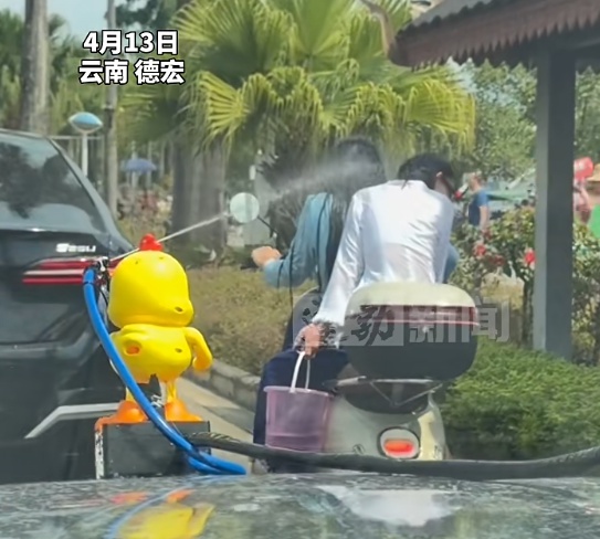 据蓬勃新闻,4月13日,云南德宏泼水节上演"不讲武德"场面,视频显示,一辆黑色奥迪车车头加装 "喷水小鸡" 装置,驾车沿途向路人、电动车驾乘人员喷水。