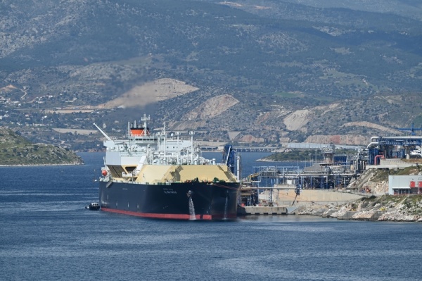 2026年3月28日,希腊雅典附近雷维苏萨终端,HL SEA EAGLE号液化天然气运输船卸载来自美国萨宾帕斯终端的液化天然气。伊朗冲突导致全球天然气供应中断,美国向欧洲输送液化天然气变得尤为重要。 IC Photo
