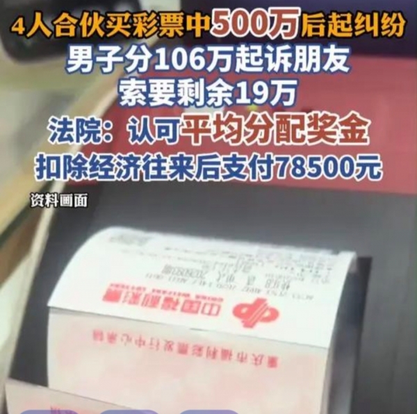 要说这年头,因为钱翻脸的事儿可真不少。最近河南就有这么一档子事,四个朋友一起凑钱买彩票,结果真中了500多万!本来是天大的好事,最后却闹上了法庭。