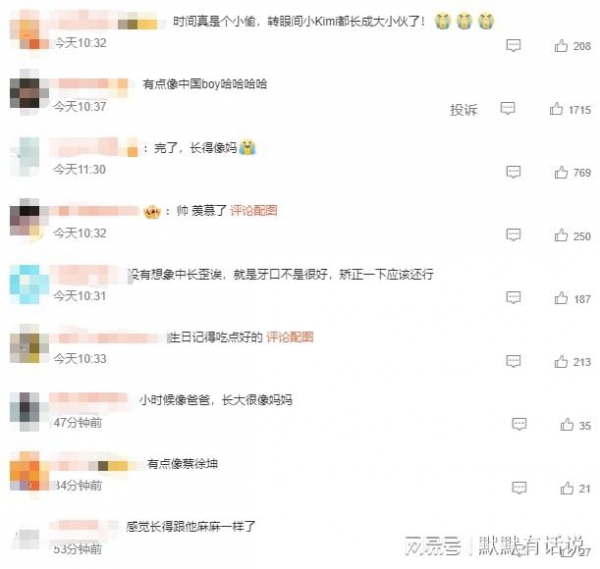 还有网友称:时间真是个小偷,转眼间小Kimi都长成大小伙了!有点像中国boy哈哈。