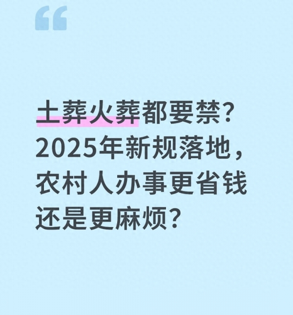 前几天回老家给爷爷上坟,村里老人们都在传"以后土葬火葬都不让弄了,中央要统一管农村丧葬",不少人慌着打听要不要提前准备,还有人担心传统习俗保不住,办丧事会又费钱又麻烦。