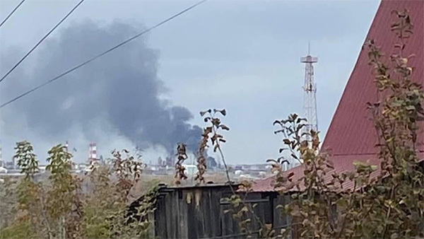 社交媒体上流传的俄罗斯炼油厂11日遇袭画面