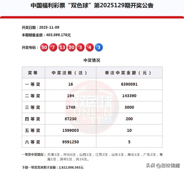 本期开奖日期为2025年11月9日,全国销量 4.03亿,筹集公益金1.45 亿!公益金如春日暖, 爱心汇聚化甘泉。 扶危济困真情在, 善举之光耀世间。
