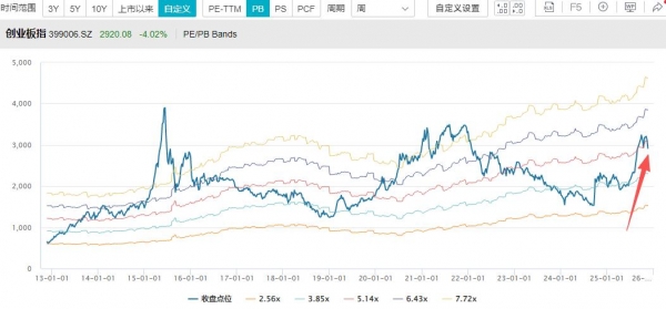 从过去十几年的创业板走势来看,当前位置中等,并未高估。