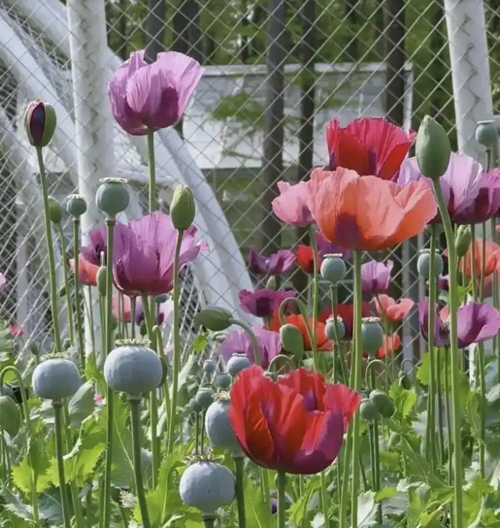 近日,市民发现武汉植物园一白色铁笼内种植着正盛开的罂粟,部分植株超成年人高。