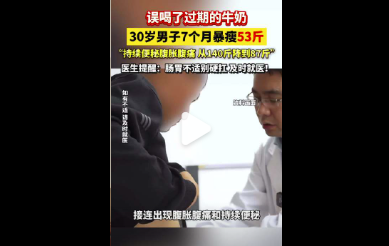 近日,一则健康警示案例引发关注:30岁男子误饮过期牛奶后,肠道遭细菌侵袭,出现顽固性腹胀、腹痛及便秘。7个月内,其体重从140斤暴跌至87斤,营养严重流失。医生分析,过期牛奶中的致病菌会破坏肠道动力系统,导致假性肠梗阻。专家强调,肠胃不适若持续超过数日,需立即就医,避免病情恶化。