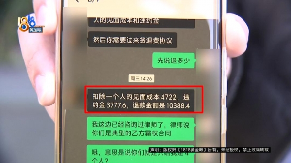 小徐说因为这次不愉快的经历,她提出退款,对方说是要扣除一个人的见面成本4722元,违约金3777元。