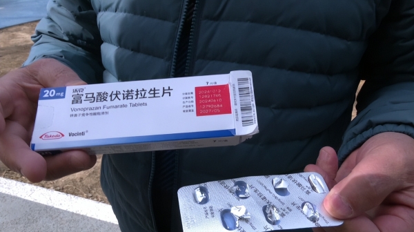家住呼和浩特市的孟先生,患有反流性食管炎。3月8号,他的爱人在呼和浩特市赛罕区天赐医药药店自费为他购买了一盒名叫"富马酸伏诺拉生片"的进口药。